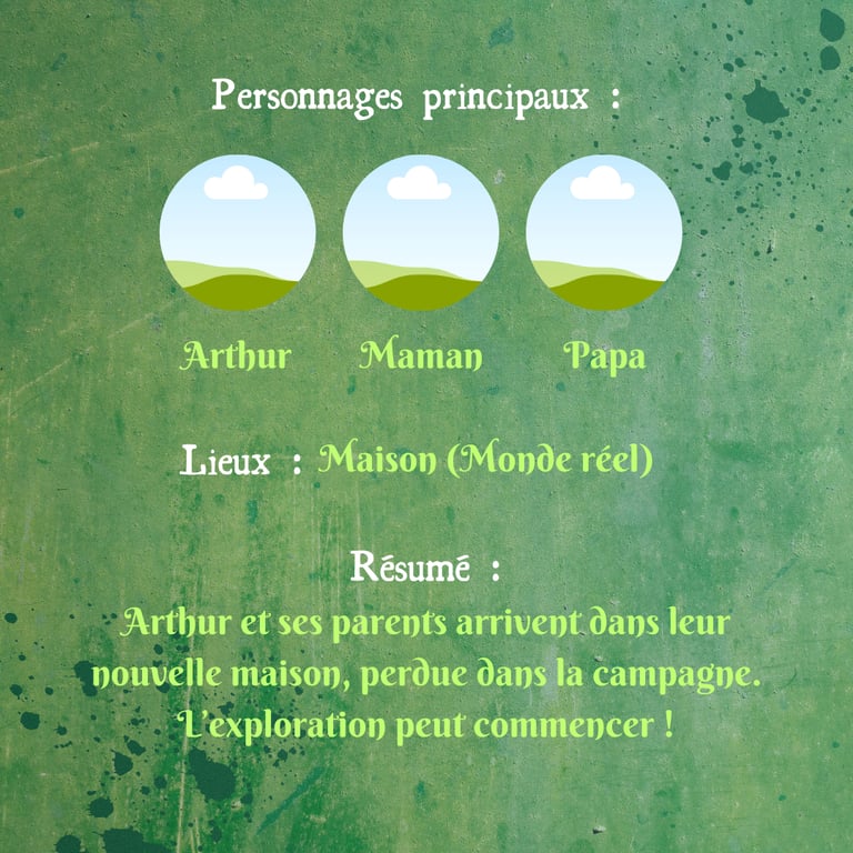 En plein été, Arthur arrive avec ses parents dans leur nouvelle maison. Cette vieille bâtisse, pleine de trésors, perdues dans la campagne drômoise, est l'occasion de prendre un nouveau départ. Papa et Maman aimeraient reconnecter avec leur fils, mais ce dernier, suite à un traumatisme scolaire, s'est enfermé dans la solitude. Rapidement, cette échappatoire se transforme en poids pour l'adolescent. L'ambiance est tendue, difficile de trouver sa voie dans ce monde adulte. En explorant la maison, Arthur parvient à en percer le mystère : elle possède un passage secret dans la cheminée du salon, menant à son propre imaginaire !