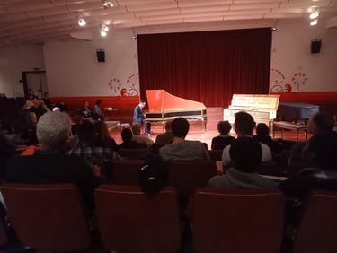 Tandis que je revenais de la boutique, où j'ai trouvé un livre rassemblant 50 instruments de musiques insolites (l'article le plus proche d'un catalogue d'exposition de MIM) et une flute aborigène ... J'ai continué mon exploration des étages, en croisant plusieurs adolescents et leurs familles. Mon instinct me poussa à les suivre. C'est ainsi que je me suis introduit dans la salle de concert, où des élèves du conservatoire donnait un récital au piano. Au prix de quelques grincement de planches, je me suis installé et j'ai savouré le spectacle dans la plus grande discrétion.