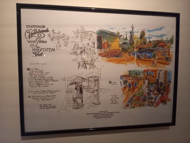 En plus de l'exposition temporaire sur l'histoire d'Idefix, le chien d'Asterix, le 1er étage présentait une sélection de planches, de croquis et de carnet répondant à deux thématiques qui me parlent de plus en plus : Le voyage et l'art engagé (politisé même, du côté progressisme de la force, bien entendu) ... Sans faire une diatribe à propos du militantisme et de la politique en France, je me contenterais de dire ceci : Je soutiens les personnes discriminées (quel que soit leur genre, origines ou parcours) et lutte comme je peux contre les injustices (qu'elles soient sociales, politique, environnementales, etc ...). Les œuvres exposés ont donc résonné en moi, épousant mes valeurs, et m'ont donné quelques idées ... Nous verrons si je les concrétiserais un jour. Une fois terminé, les étudiants m'accompagnant sont rentrés chez eux, et j'ai fait le tour complet du musée !