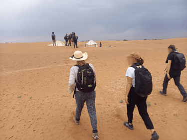 Et Claire pendant ce temps ? Elle court dans les dunes, pour rencontrer d'autres voyageurs. Franchement Claire, je t'admire pour ton enthousiasme et ton énergie. Mais comment fais-tu ? Quel est ton secret ?