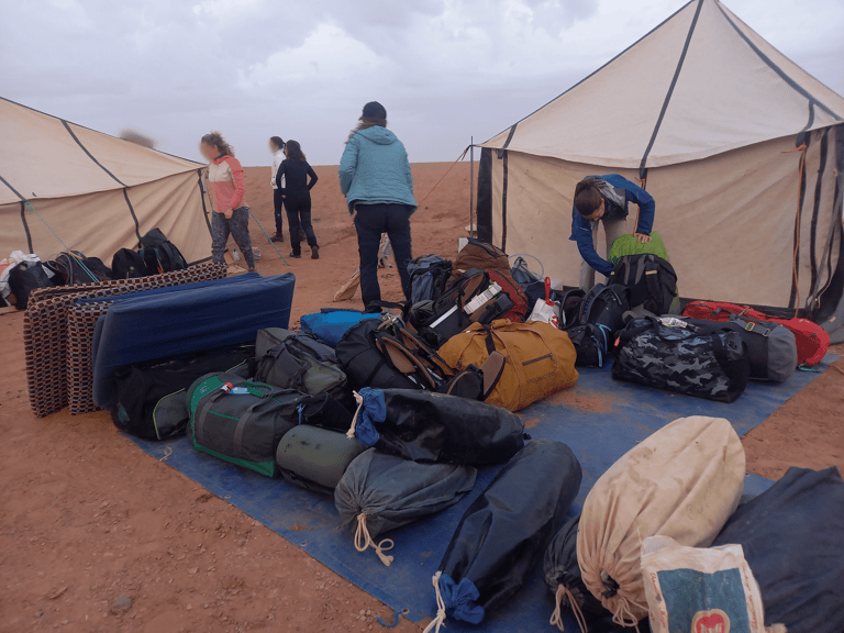 Pour info : nous voyageons légers, avec seulement un sac à dos lors de la marche. Nos gros sacs de voyages étant transportés et gérés par les chameliers, que nous retrouvions le soir seulement.