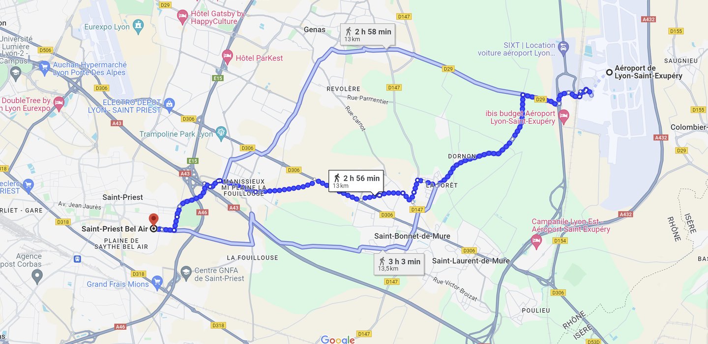 Pour des raisons budgétaires, j'avais choisi un train qui ramena à l'aéroport Lyon Saint-Exupéry, nommé d'après le célèbre aviateur et auteur du classique : Le Petit Prince ... un lieu que j'avais visité lors de mon voyage à Paris en 2022. Mais ça, c'était la partie facile ... ce qui fit le sel de ce trajet retour, c'est justement mon retour chez moi, à environ 20 km de l'aéroport.