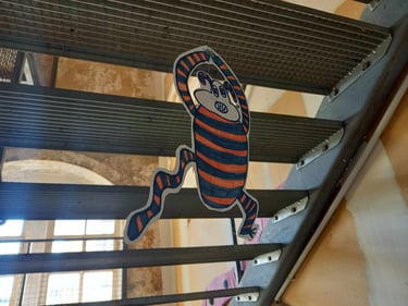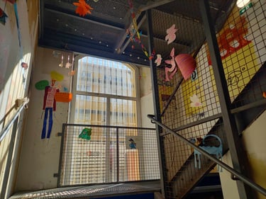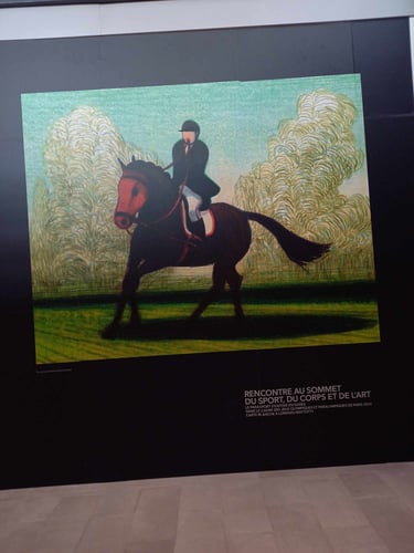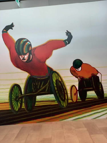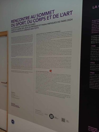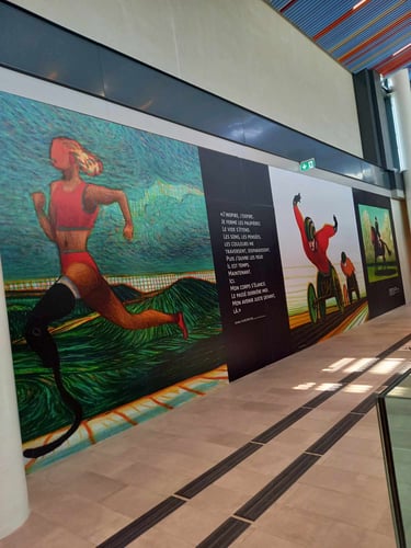 Mais si je vous en parle, ce n'est pas pour admirer son architecture intérieure, mais pour présenter une exposition permanente qui s'y trouve depuis les J.O de Paris 2024, et que personnellement, sans être passionné de sport, je trouve assez sympathique. Je suppose que c'est aussi en l'honneur de la ré-ouverture (en 2025) de la ligne reliant Lyon et Turin, que l'illustrateur italien Lorenzo Mattoti a produit et exposé ces œuvres sur les jeux paralympiques, rappelant que l'intégration est primordiale au sport.