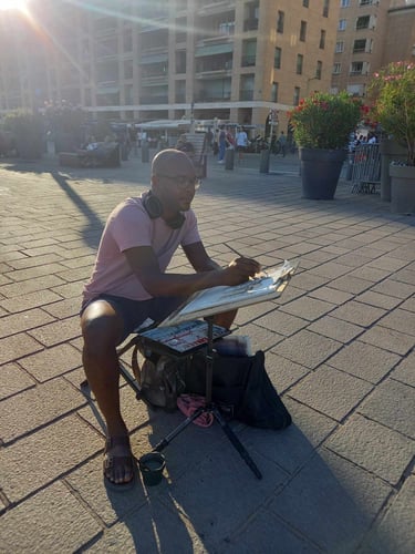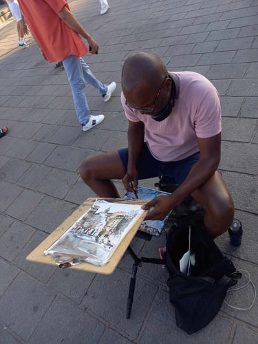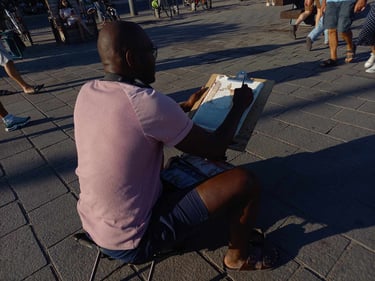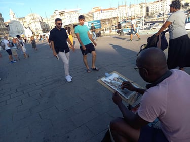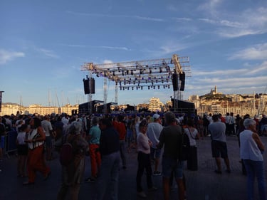 En revenant sur le quai, je suis passé à travers la foule venu assister au concert de Véronique Sanson et Djazia Satour (je ne connaissais pas cette dernière à ce moment, sinon je me serais arrêté pour l'écouter chanter et jouer !), pour le festival "L'été Marseillais". Me frayant un chemin entre les locaux et les touristes, à heure d'affluence, je croise le regard de Jules Carell, un aquarelliste de talent avec qui je papote, sans voir le temps passer. Une rencontre que je qualifierais de typiquement "marseillaise" : enrichissante, humaine, agréable, décomplexée, et solaire. Bref allez vite voir son travail, ça vaut le coup !