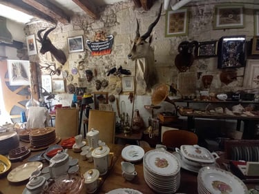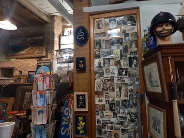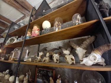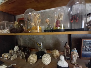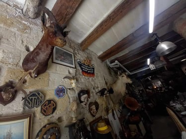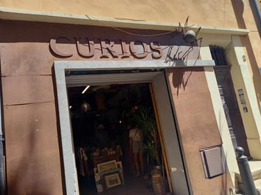 J'avais terminé ma boucle, et j'étais prêt à repartir vers le point de RDV, quand je suis passé devant une boutique qui m'a intrigué. Attiré par l'énorme araignée métallique sur l'enseigne, je suis entré dans cette véritable caverne aux merveilles qu'est "Curios" ! Un véritable cabinet de curiosités, remplis de trésors, dans lequel je ne put rien acheter pour des raisons budgétaires et pratiques, mais l'envie m'en démangeait. Crânes, masques, vieux appareils, œuvres d'art, restes d'animaux marins en bocaux, cartes anciennes, papillons sous verre, etc ... Cette boutique rassemble tout ce dont rêvent les brocanteurs et aventuriers !