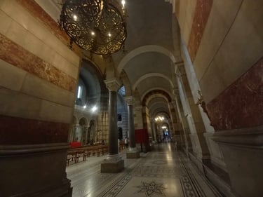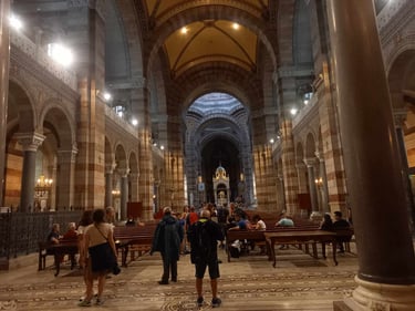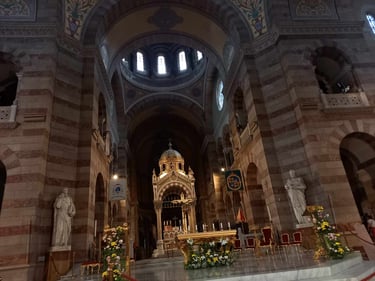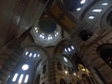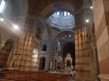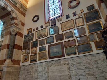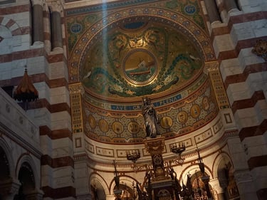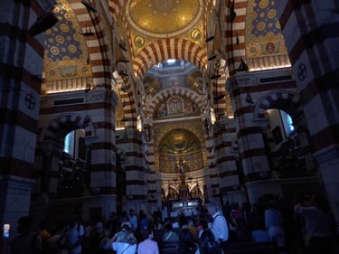 Retrouvez toutes les infos sur l'histoire de ce monument sur sa page Wikipedia (https://fr.wikipedia.org/wiki/Basilique_Notre-Dame-de-la-Garde#Galerie_de_photos) ; en attendant, entrons à l'intérieur.