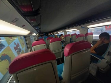 Alors que je regardais les paysages verdoyants défiler à la fenêtre, je méditais sur mes prochaines destinations, savourant un voyage calme dans la cabine d'un vieux TER, dont la disposition me rappelais les vieux trains du siècle dernier. Ambiance vintage garantie.