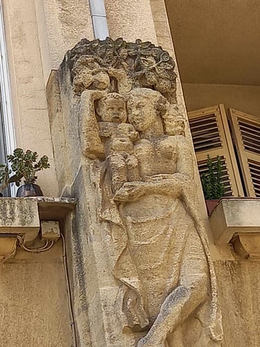 Mon logement se trouvant rue Tasso, je tomba sous le charme de cette statue que je croyais être une sirène. Il s'avère que ce haut-relief signé Raymond Servian (sculpteur marseillais, qui l'a réalisé peu avant sa mort) représente Amphitrite (une nymphe marine épouse de Poséidon, dans la mythologie grecque) portant une nef !