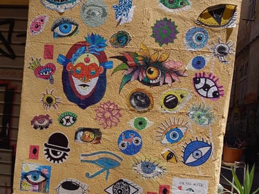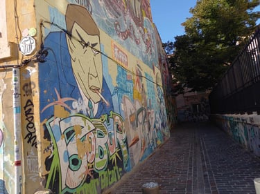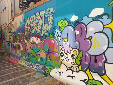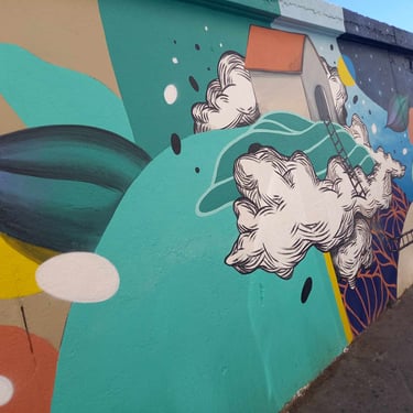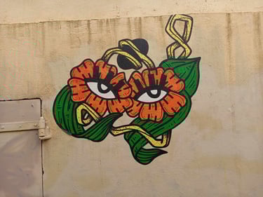 Mais bien sur que je vous entend râler, bande d'impatients. Les vieilles rues, les plantes, les messages tagués, ça va bien 5 minutes. Mais si vous êtes là, c'est pour l'ART ! On y vient justement ... Si ce quartier m'avait déjà fait une forte impression lors de mon premier passage, il était inconcevable de ne pas photographier tous mes tags, stikers, et fresques préféré.e.s !!! Il y en a trop pour lister les artistes et leur contexte, mais si le sujet vous intéresse, foncez, vos recherches vous conduirons à de belles découvertes ... C'est parti pour l'inventaire de l'art du panier !!!