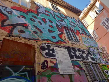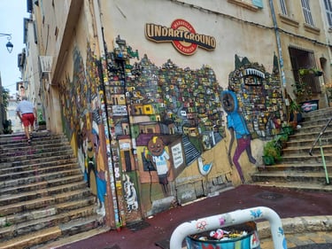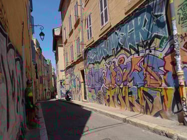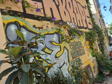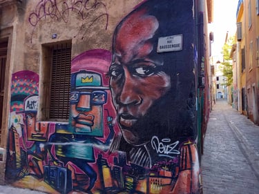 Puisque je voyageais avec seulement un sac à dos (40L la base), pour voir une dernière fois Yanis avant mon départ, il me suffisait de reprendre le chemin qui m'avait mené au logement en sens inverse, car la gare de Marseille Saint-Charles se trouvait pile entre moi et une destination très particulière. J'ai traversé le quartier le plus sale de la ville, puis la gare, avant de poursuivre en longeant la voie ferrée. Admirant les tags artistiques sur les murs, et un environnement urbain calme et vivant.