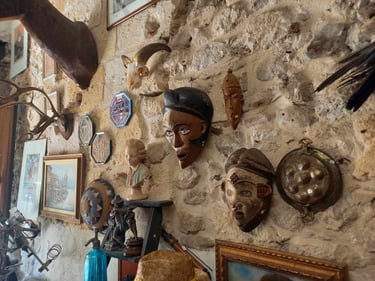 Là où les autres galeries présentent des objets utilitaires, rituels ou non, celle-ci renferment une impressionnante collection de sculptures artistique et de masques esthétiques ! Il y a une nette différence entre les objets issus de la colonisation, et ceux rassemblés par un véritable passionné respectueux ! Mais voyez plutôt ...