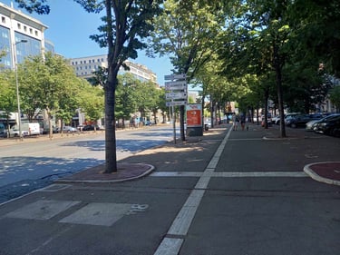 En voyant que la batterie de mon portable allait me lâcher d'ici quelques heures, je choisis de m'installer dans le hall d'un hôtel (le temps de remplir ma gourde) et de repérer mon itinéraire pour rentrer à pieds ! Car je ne comptais pas payer un tramway hors de prix pour revenir à la gare Part Dieu.