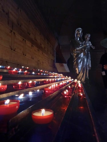 Même en tant qu'athée, j'éprouve un grand respect pour ce qui apporte du réconfort aux gens, y compris les différentes croyances, qui les accompagnent dans les pires moments. Mon passage vers cette vierge à l'enfant nous a donc touché, en partie grâce à ces nombreux cierges alignés.
