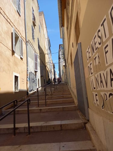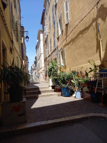 A la gare de Marseille Saint-Charles, j'étais en terrain connu. Une petite marche de 15 à 20 minutes me conduisit rapidement au Airbnb, qui se trouvait juste à côté de la Cathédrale de la Major, dont je parlerais plus tard. Ce logement, légèrement moins confort que le précédent, mais bien plus authentique (donc proche de ce que je recherche en voyage) était tout de même très mignon. J'étais dans un vieil immeuble typiquement méditerranéen, qui avait bien vécu mais tenait bon envers et contre tout. Je rencontrais rapidement mon logeur, car il y avait une réparation à faire pour le pommeau de la douche. Une fois cela réglé, je m'installa dans ce petit coin modeste, mais charmant et lumineux. De toute façon à partir du moment où j'ai mon intimité, la tranquillité et la sécurité, je ne suis pas très difficile à loger. Quelques courses plus tard (qui me permirent d'acheter et de goutter les figues de barbarie, qui poussent sur les cactus !) ... Je suis parti explorer mon quartier préféré !