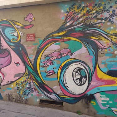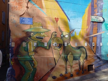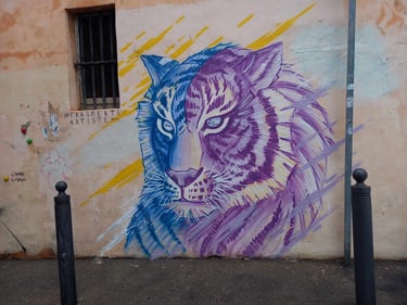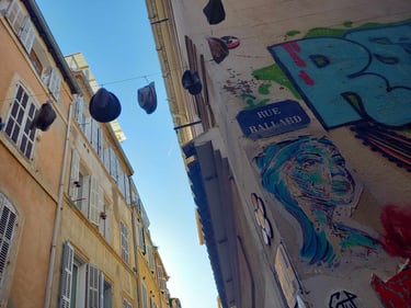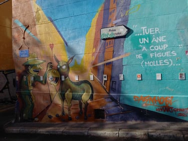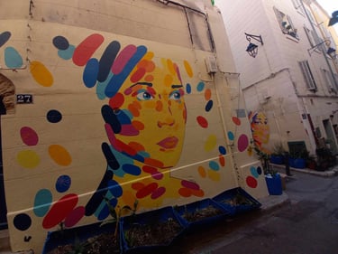 .... un vrai coup de foudre ! Pour un quartier qui deviendra mon préféré ... Pour ceus qui l'ignorent, le quartier du panier est un *e zone résidencielle, qui juxtapose le vieux port, au centre-ville. Dès mon arrivé j'avais remarqué la présence de nombreuses fresques et peintures murales, dans le coin. ce n'était donc qu'une question de temps avant que j'aille explorer le voisinage.