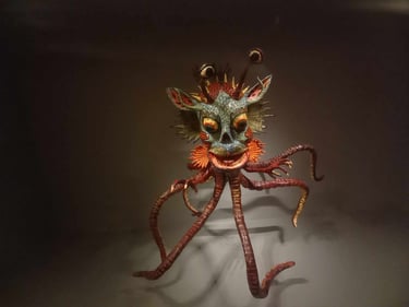 Pour rester fidèle à moi-même, comment ne pas vous montrer cette superbe créature burtonnesque, d'origine mexicaine, signée Pedro Linares López (1906-1992), qui d'après mes recherches, serait, comme bien d'autres, issue directement de ses vivions et de ses cauchemars (source :