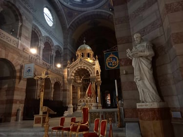 Sans être croyant, je reste sensible à la beauté artistique des monuments religieux, et comment ne pas être charmé par la splendeur orientale et coloré de cet endroit ? Avec son iconographie d'inspiration maritime, ses détails cachés, et l'harmonie des couleurs ... La basilique avait tout pour me plaire. Aussi je dois mentionner les fabuleuses mosaïques qui ornent ses murs, et qui complètent à merveille l'ensemble.