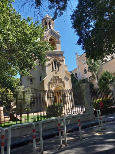 Etant moi même d'origine arménienne, je ne pouvais pas passer à côté de cette église nommée La cathédrale des Saints-Traducteurs de Marseille (ou église Saint-Sahak et Saint-Mesrob). Nous ne pouvions y entrer, car l'édifice était fermé (surprenant pour un dimanche), mais nous y sommes rester bien 10 minutes. Le temps de trouver le bon angle pour une photo digne de ce nom ... Entre les voitures, les arbres, la clôture et les poteaux de la rue, c'était pas gagné !