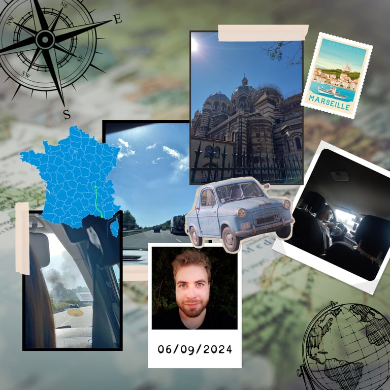 Par soucis d'économie, j'avais opté cette fois pour un blablacar, redécouvrant le plaisir de d'échanger avec mes compagnons de route, tandis que les paysages défilaient. Nous avons voyagé dans la bonne humeur, malgré nos divergences en matière de goûts musicaux (Navré, mais le rap a vraiment du mal à passer chez moi. Je reconnais les morceaux de qualité, mais j'accroche pas). Après avoir dépassé un accident de la route, on arrive enfin à Marseille et je dit au revoir à mon super chauffeur, que je retrouverais pour le voyage de retour.